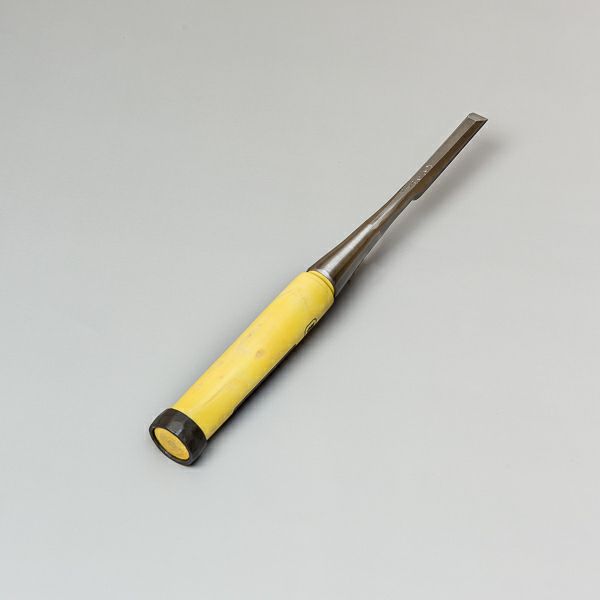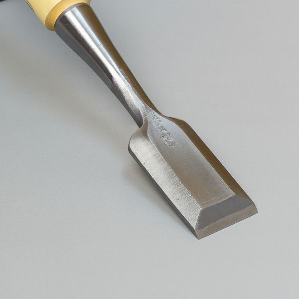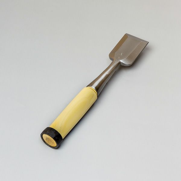 The core-holding gummy handle, a standard feature of Banshu chisels, is strong, resilient, and highly impact resistant.