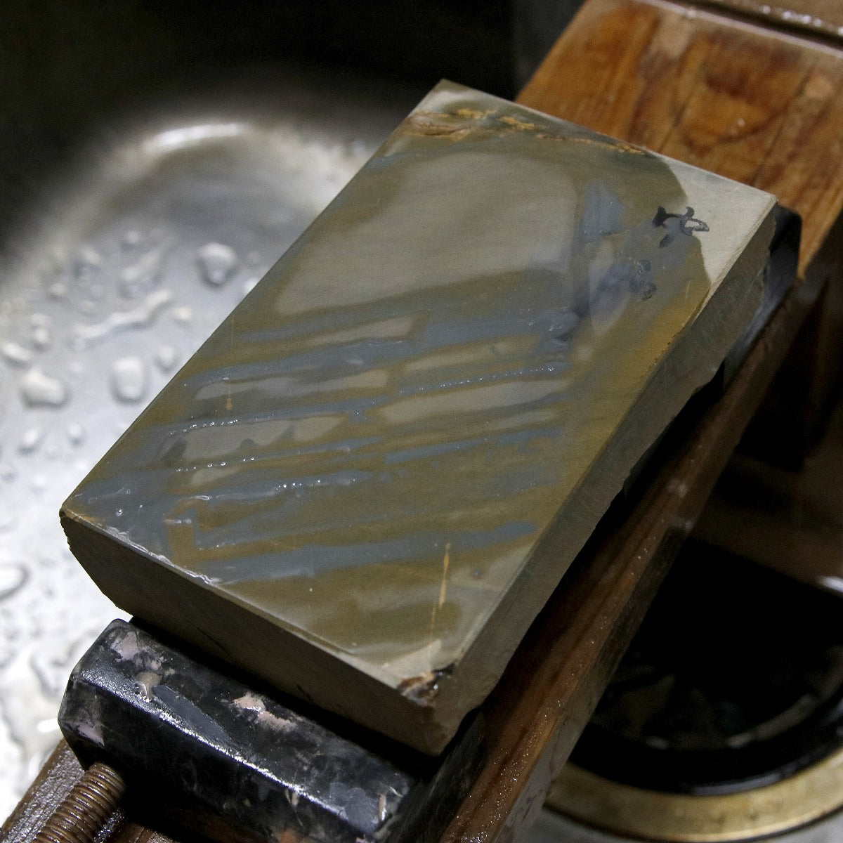 The color of the whetstone may seem hard, but the sharpening feel is a little softer.