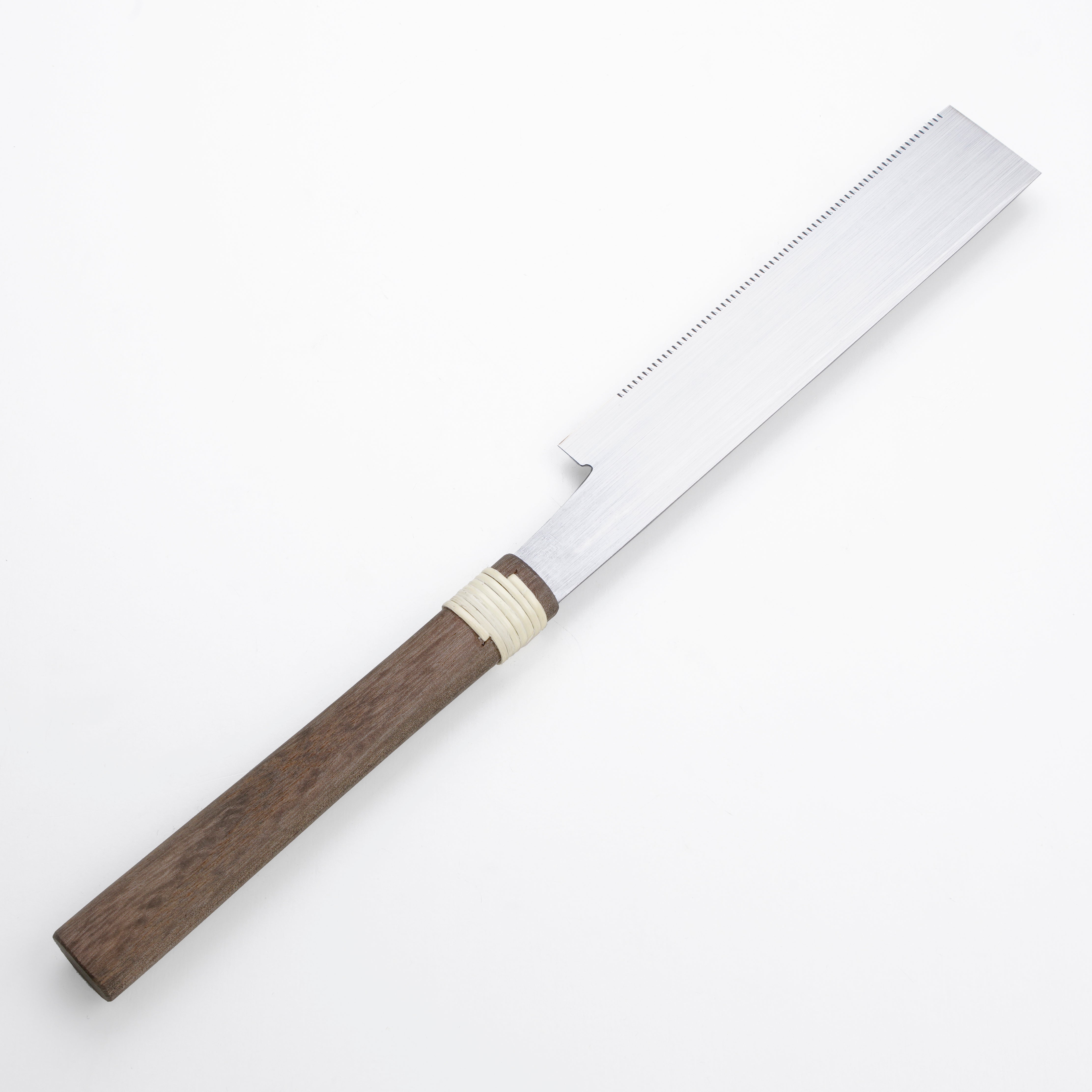 The back of the saw board is thinned to achieve the light cutting edge and ease of use that only a single-edged saw