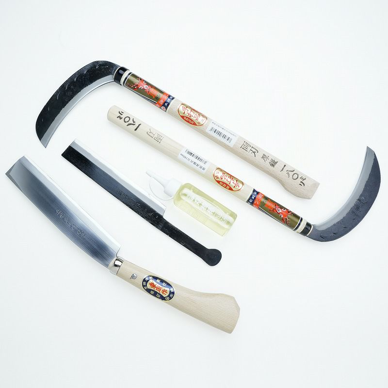 ◎Ojika Aogami Thin Sickle Double-Edged 180mm with Handle