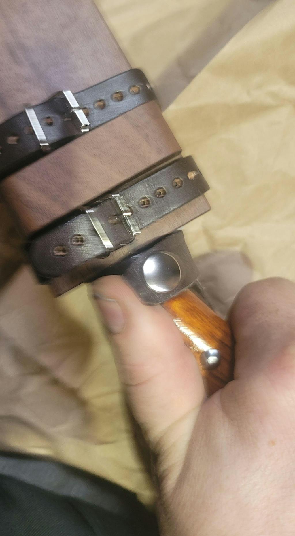 The sheath is crafted from walnut, one of the world’s three finest hardwoods,
