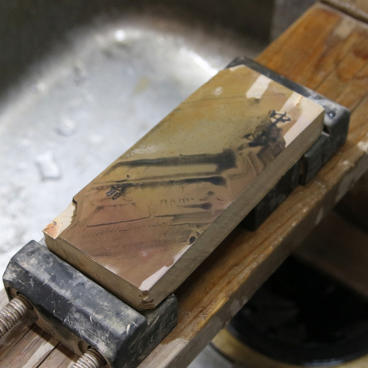 Please judge the hardness from the sharpening water in the photo.